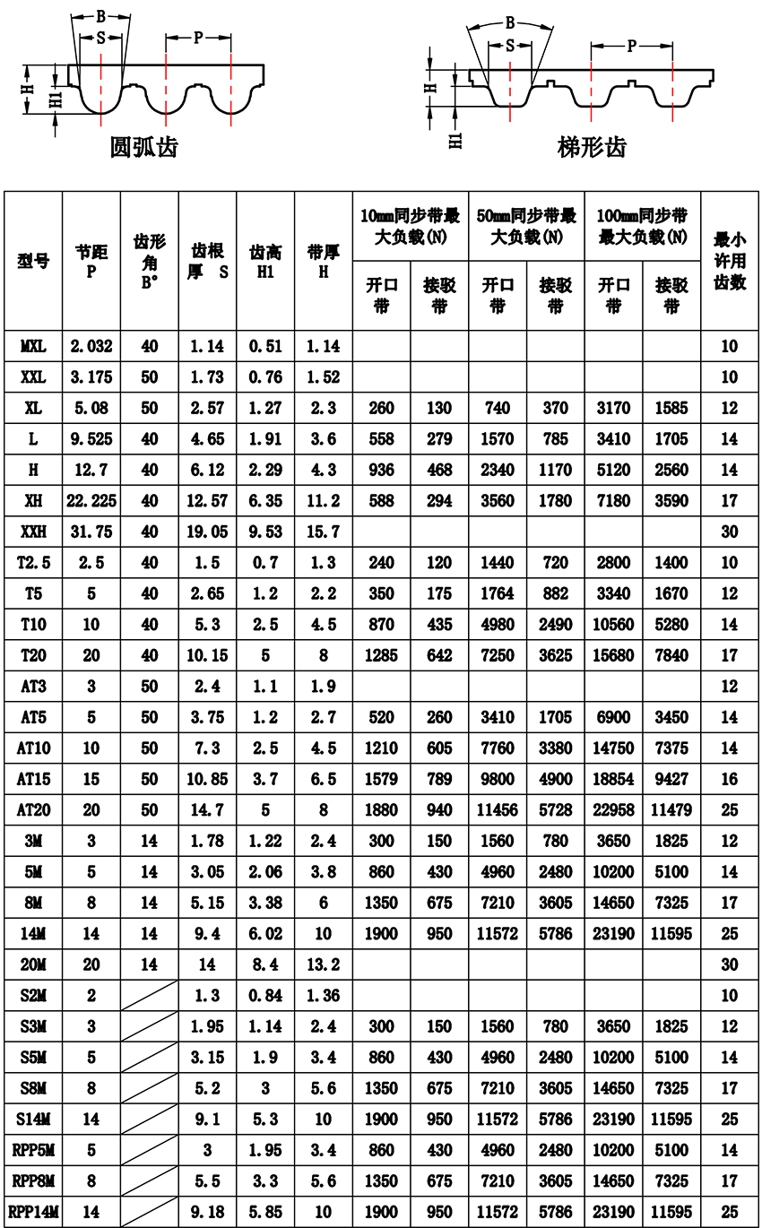 同步带参数表